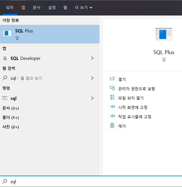 윈도우 탐색기 들어가셔서 sqlplus 검색하면 아래와 같이 실행파일이 있습니다.