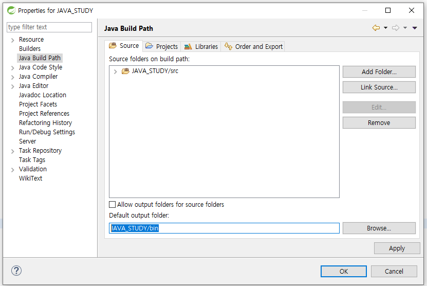 프로젝트 우클릭 -> Properties -> Java Build Path -> Source 항목 -> 하단 경로..