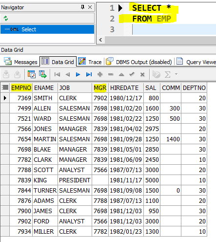 우선 EMP테이블에 대한 내용을 확인해보겠습니다.