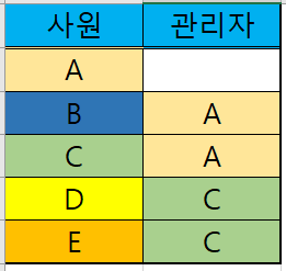 예를 들어 B사원의 관리자는 A입니다.