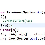 1. 입출력 함수 사용시 주의사항 1 - 타입 별로 입력을 받는 방법 1) int를 입력 받을 때는 nextInt 메서드를 이용한다. public class StandardIO { public static void main(String[] args) throws IOException { //int를 입력 받을 때는 nextInt 메서드를 이용한다. Scanner sc = new Scanner(System.in); int a,b; a = sc.nextInt(); b = sc.nextInt(); System.out.println(a+" "+b); } } 입력 : 10 20 결과 : 10 20 2) char를 입력 받을 때는 (char)System.in.read 메서드를 이용한다. public class St..